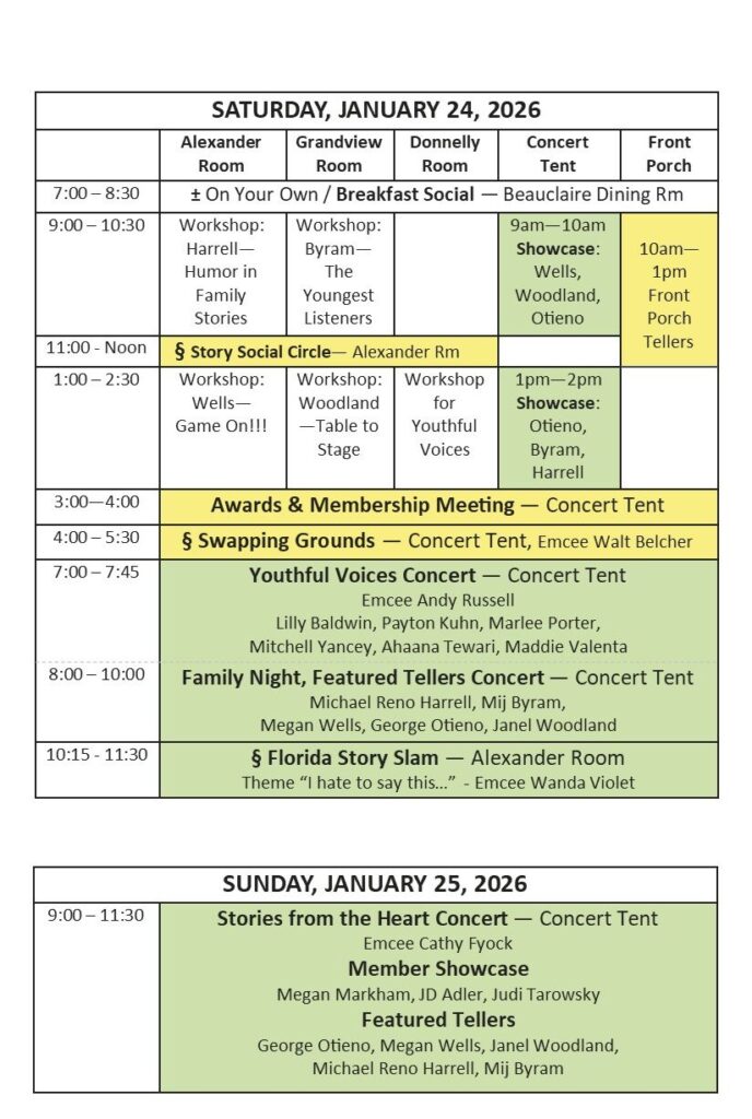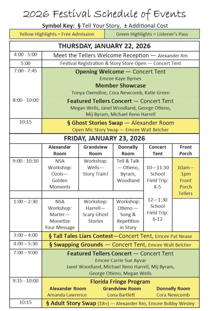 Our 2026 Festival Schedule is packed with featured storyteller performances, workshops, and opportunities to tell your own story. Join the community.